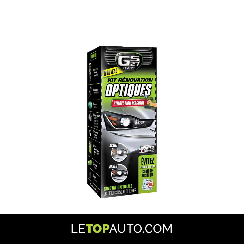Le kit GS27 est un classique toujours efficace grâce à sa formule abrasive puissante. Fabriqué par une marque française, basée en Touraine, créée dans les années 60. Ce kit garantit des résultats professionnels même sur des phares très oxydés. Spécifiquement conçu pour une utilisation facile par le grand public, il contient tous les accessoires nécessaires pour restaurer la brillance d'origine de vos optiques en quelques étapes : 1 tube de rénovateur optiques, 1 adaptateur pour perceuse ø6 mm, 1 mousse 80 x 25 mm, 8 disques abrasifs, du ruban adhésif masquant, 1 sachet de lustreur et 1 microfibre. Kit de rénovation adapté pour préparer, poncer, polir et protéger. Les résultats obtenus sont bluffants.